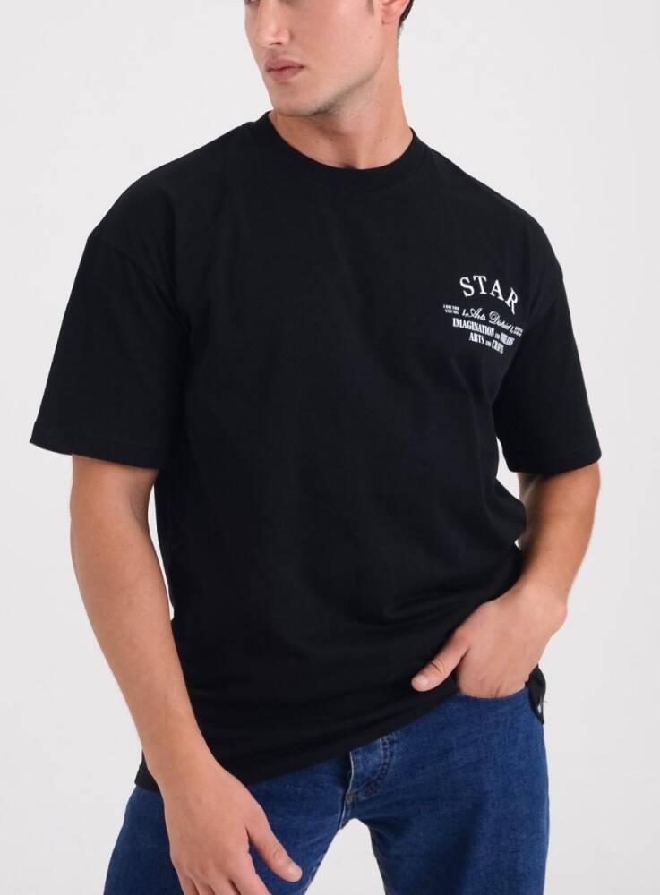 STAR ERKEK SİYAH OVERSİZE STAR PARİS BASKILI T-SHİRT