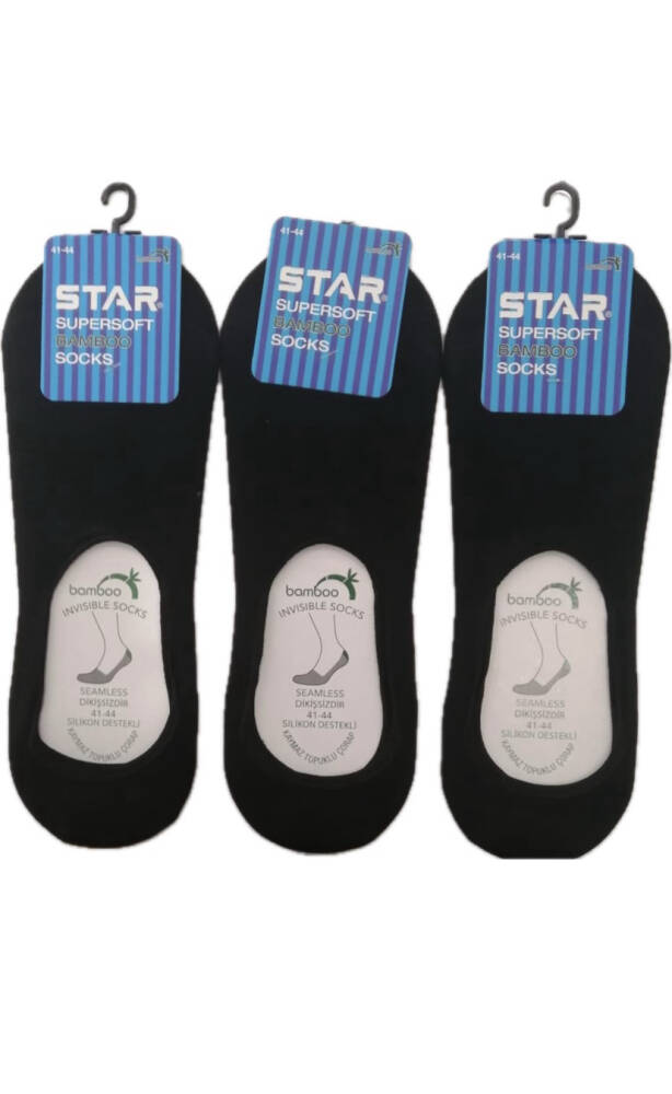 STAR 3 LÜ ERKEK SİYAH ORGANİK BAMBU PATİK ÇORAP