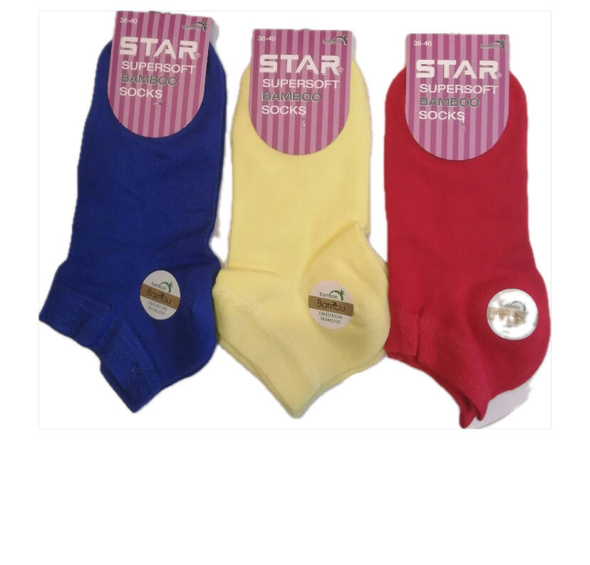 STAR 3 LÜ KADIN ASORTİ ORGANİK BAMBU PATİK ÇORAP