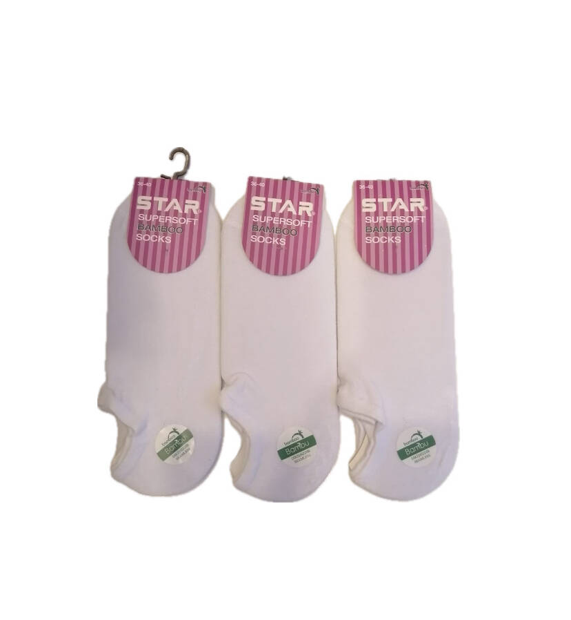 STAR 3 LÜ KADIN BEYAZ ORGANİK BAMBU SNEAKERS ÇORAP