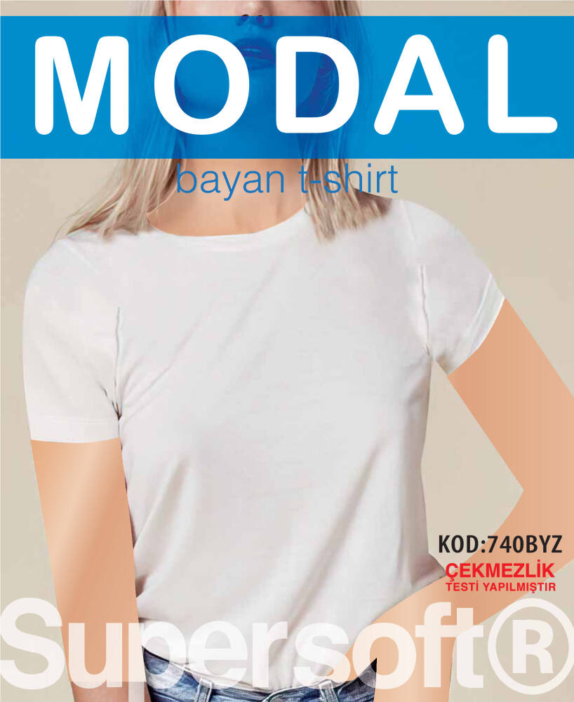 STAR KADIN BEYAZ MODAL SIFIR YAKA KISAKOL T-SHİRT