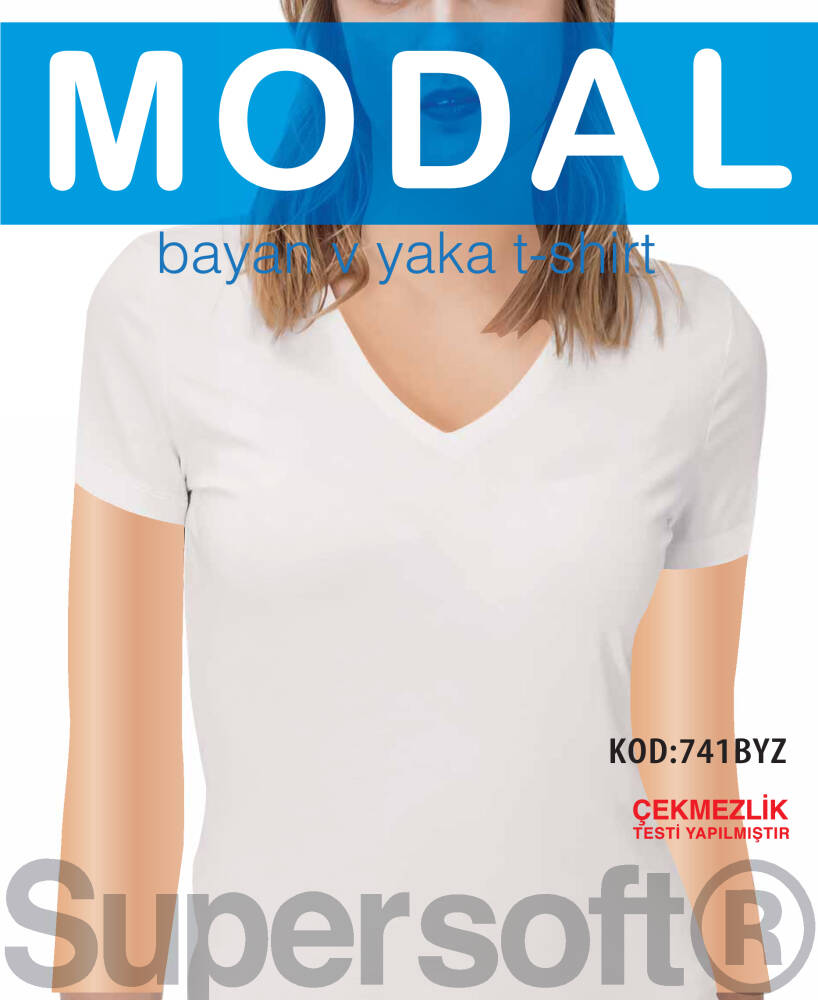 STAR KADIN BEYAZ MODAL V YAKA KISAKOL T-SHİRT