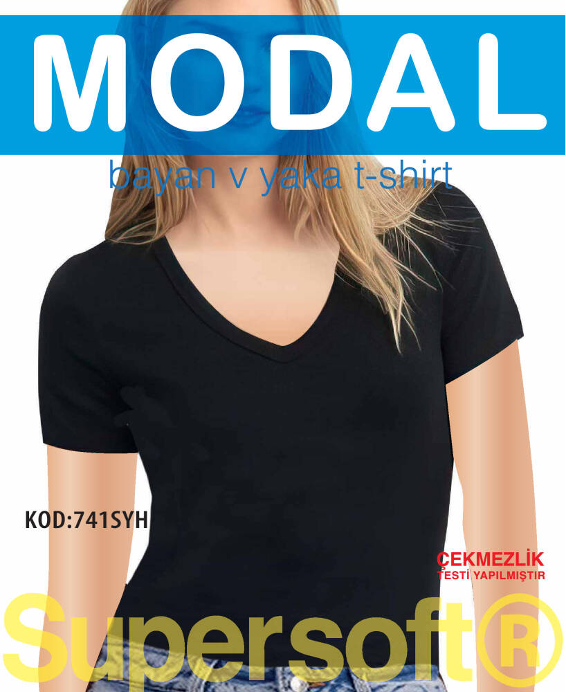 STAR KADIN SİYAH MODAL V YAKA KISAKOL T-SHİRT