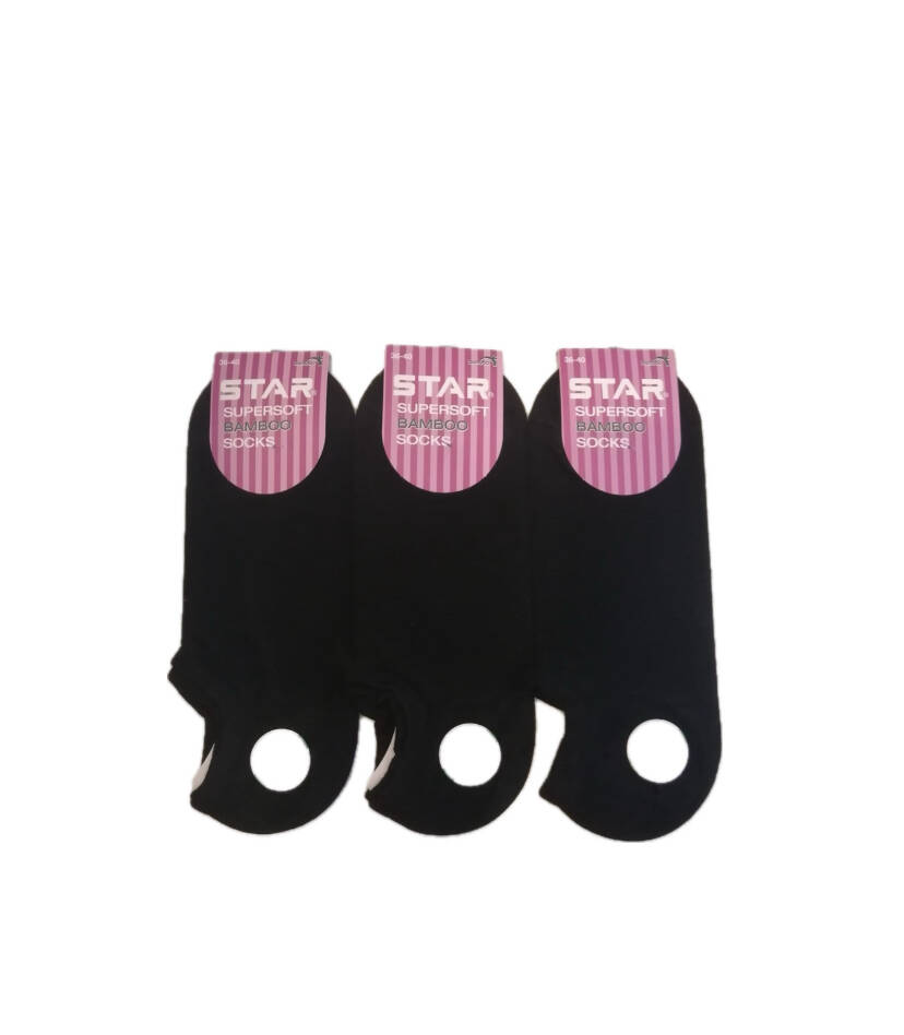 STAR 3 LÜ KADIN SİYAH ORGANİK BAMBU PATİK ÇORAP