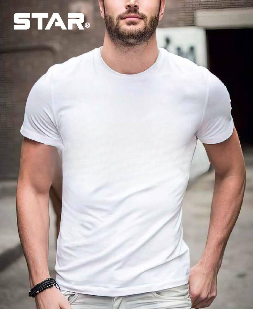 STAR ERKEK BEYAZ MODAL SIFIR YAKA YARIM KOL T-SHİRT