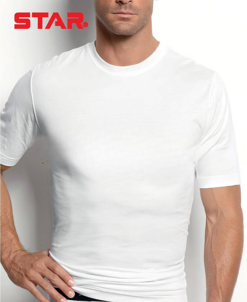 STAR ERKEK BEYAZ SAF PAMUK SIFIR YAKA KISAKOL T-SHİRT ( FANİLA )