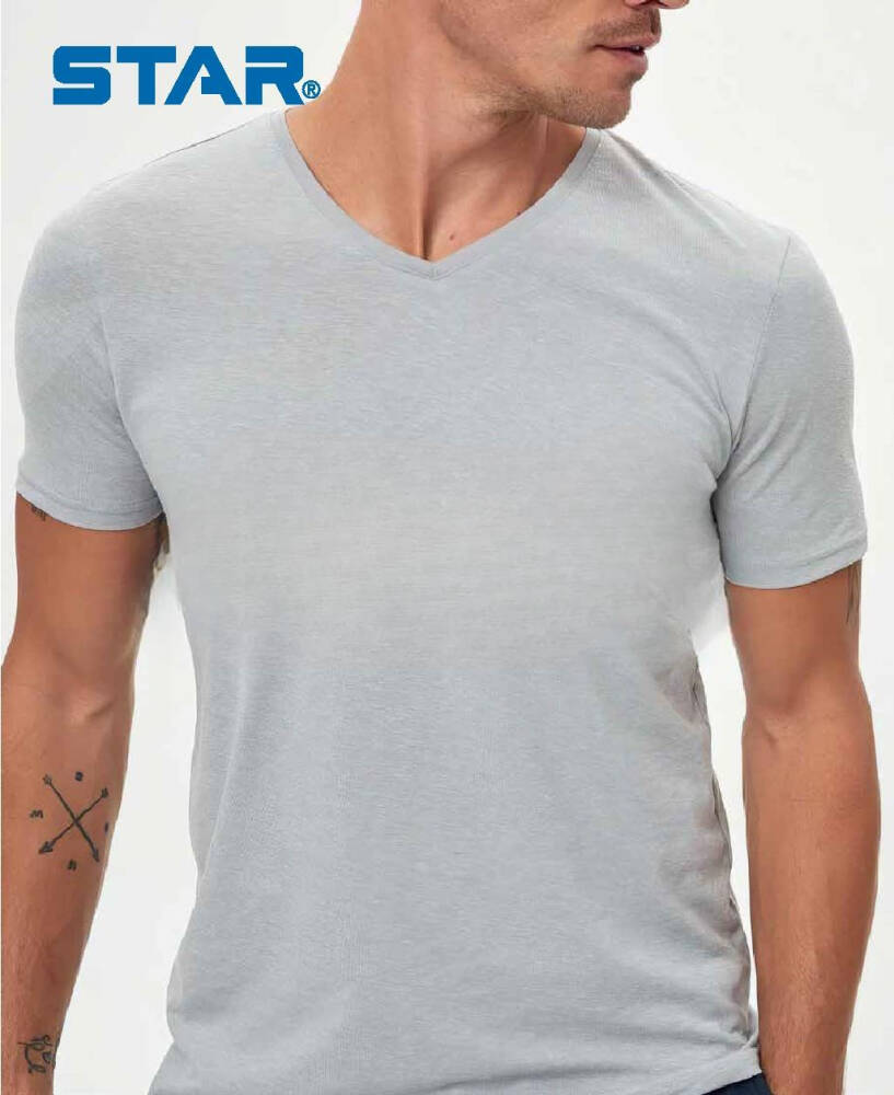 STAR ERKEK GRİ ORGANİK BAMBU V YAKA KISAKOL T-SHİRT