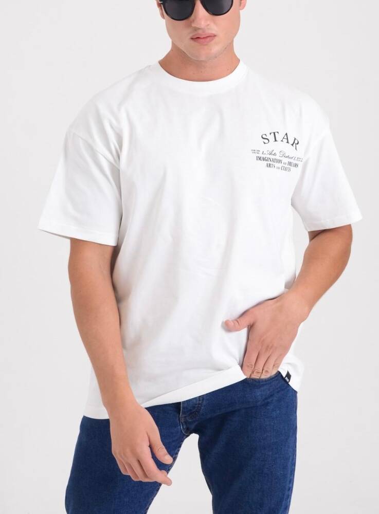 STAR ERKEK BEYAZ OVERSİZE STAR PARİS BASKILI T-SHİRT