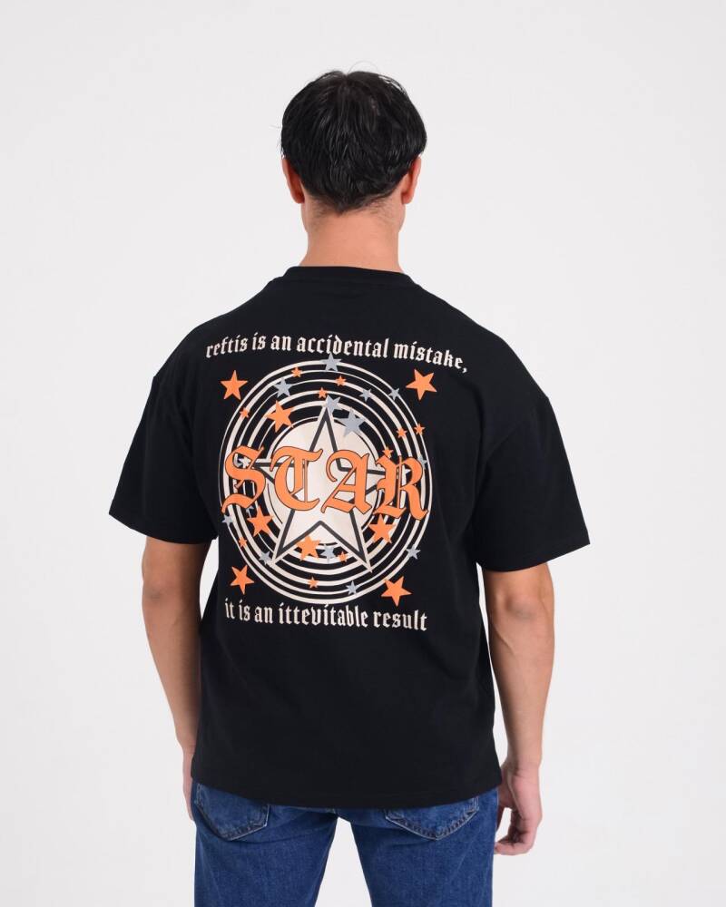 STAR ERKEK SİYAH OVERSİZE STAR PARİS BASKILI T-SHİRT