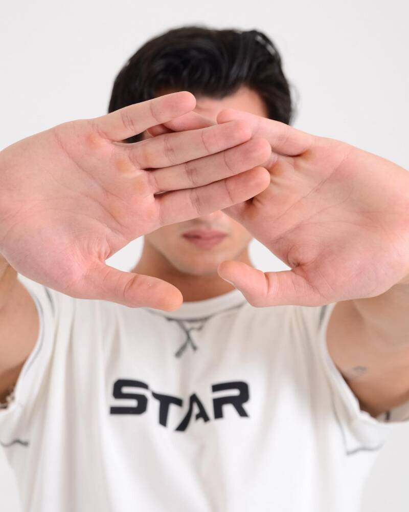 STAR ERKEK BEYAZ OVERSİZE STAR NAKIŞLI T-SHİRT