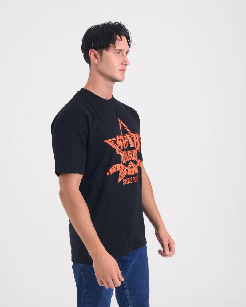 STAR ERKEK SİYAH OVERSİZE STAR PARİS BASKILI T-SHİRT