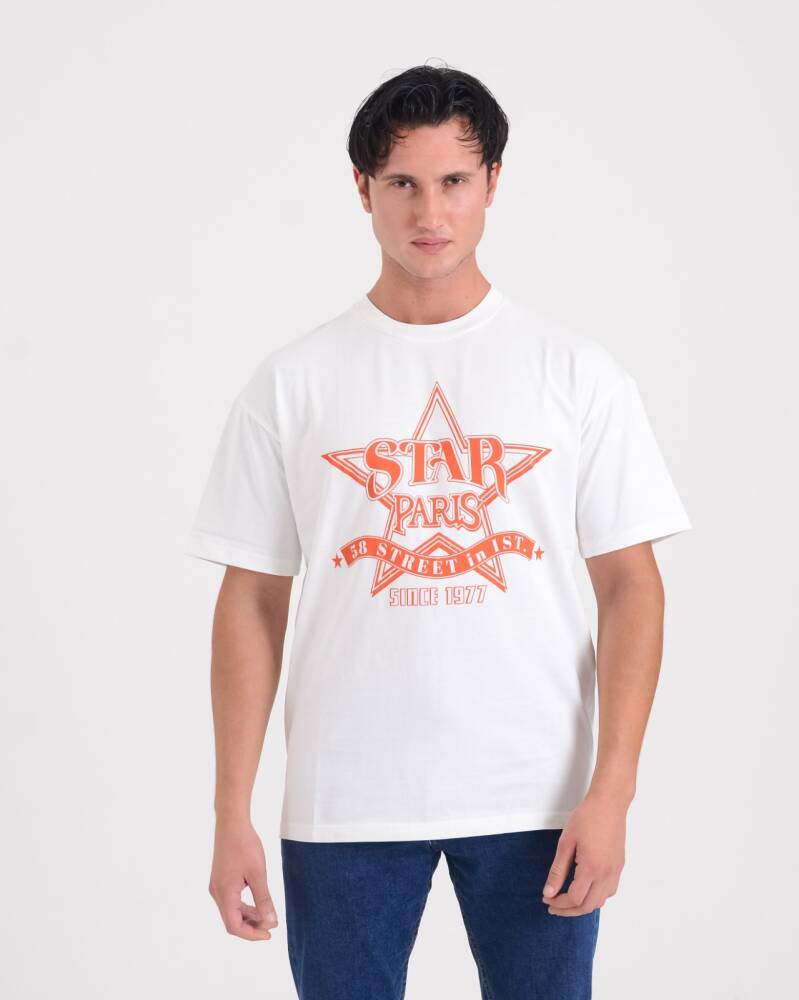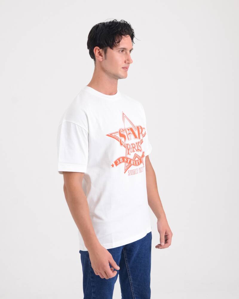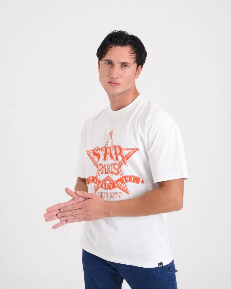 STAR ERKEK BEYAZ OVERSİZE STAR PARİS BASKILI T-SHİRT