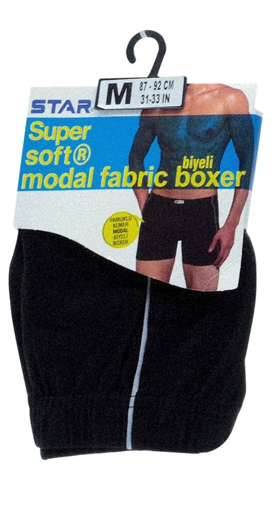 STAR ERKEK SİYAH MODAL PAMUKLU KEMER BİYELİ BOXER