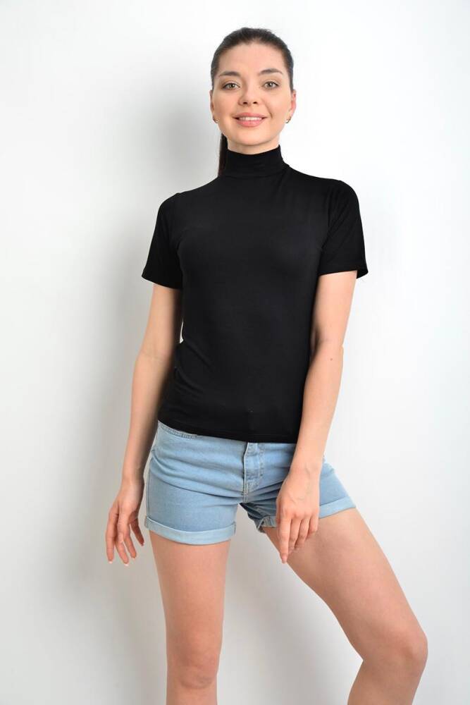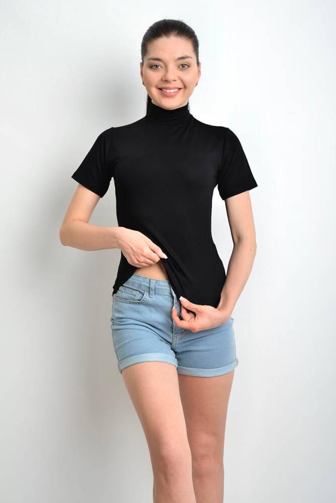 STAR İKİNCİTEN SİYAH KADIN KISAKOL BALIKÇI YAKA T-SHİRT