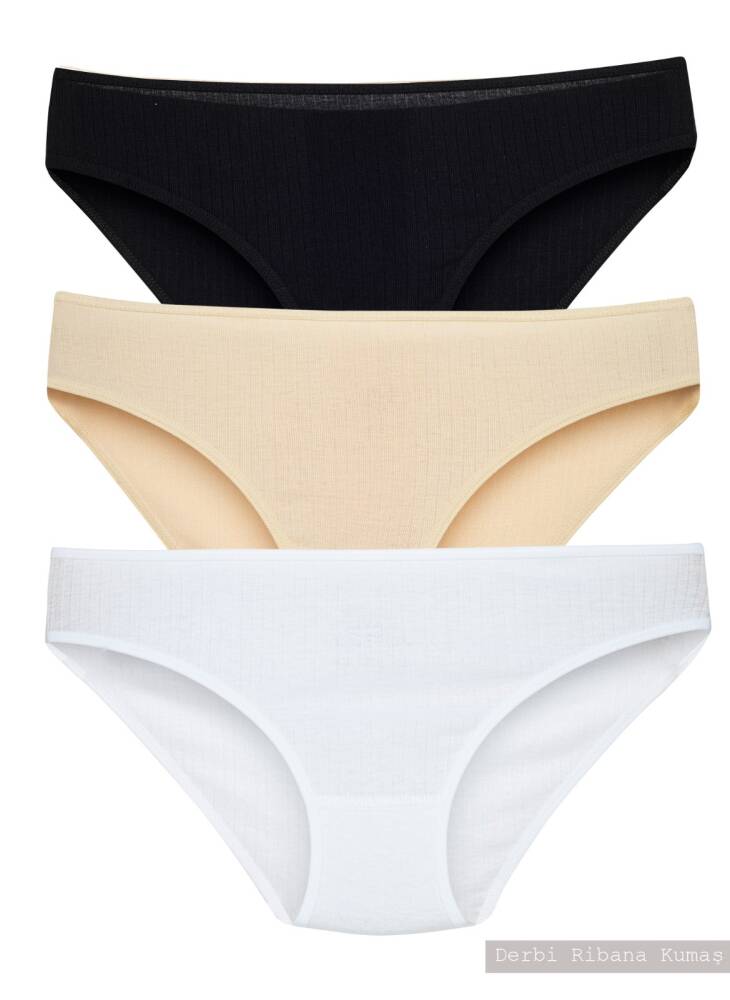 STAR KADIN 3 LÜ ASORTİ SAF PAMUK ÇİZGİLİ BİKİNİ KÜLOT