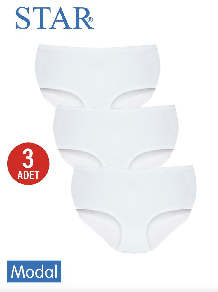 STAR KADIN 3 LÜ BEYAZ MODAL İZ YAPMAZ BATO KÜLOT