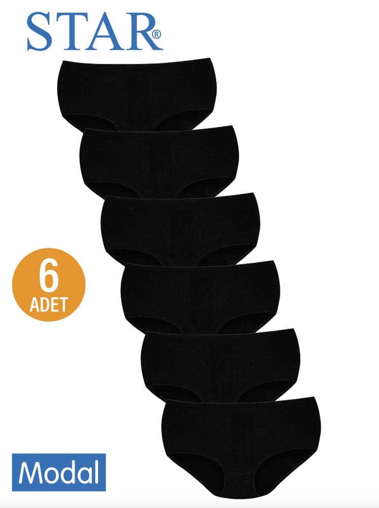 STAR KADIN 6 LI SİYAH MODAL İZ YAPMAZ BATO KÜLOT