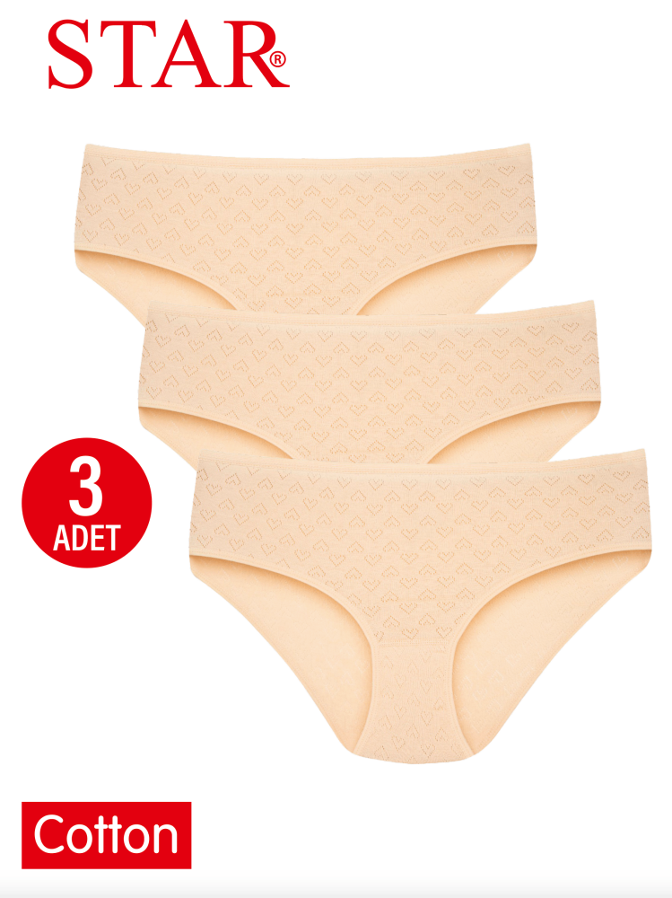STAR KADIN 3 LÜ TEN SAF PAMUK KALP DESENLİ BATO KÜLOT