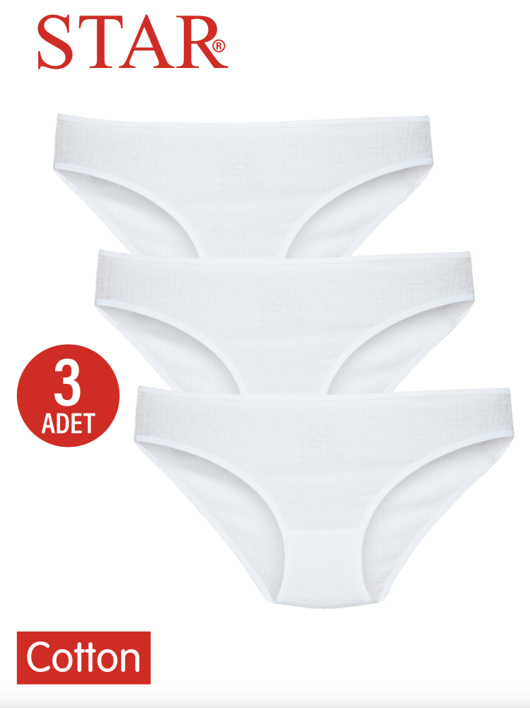 STAR KADIN 3LÜ BEYAZ SAF PAMUK ÇİZGİLİ BİKİNİ KÜLOT