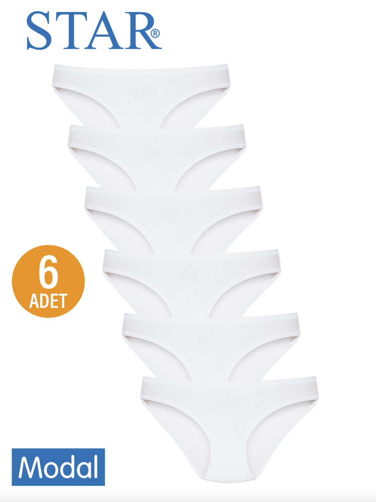 STAR KADIN 6 LI BEYAZ MODAL İZ YAPMAZ BATO KÜLOT