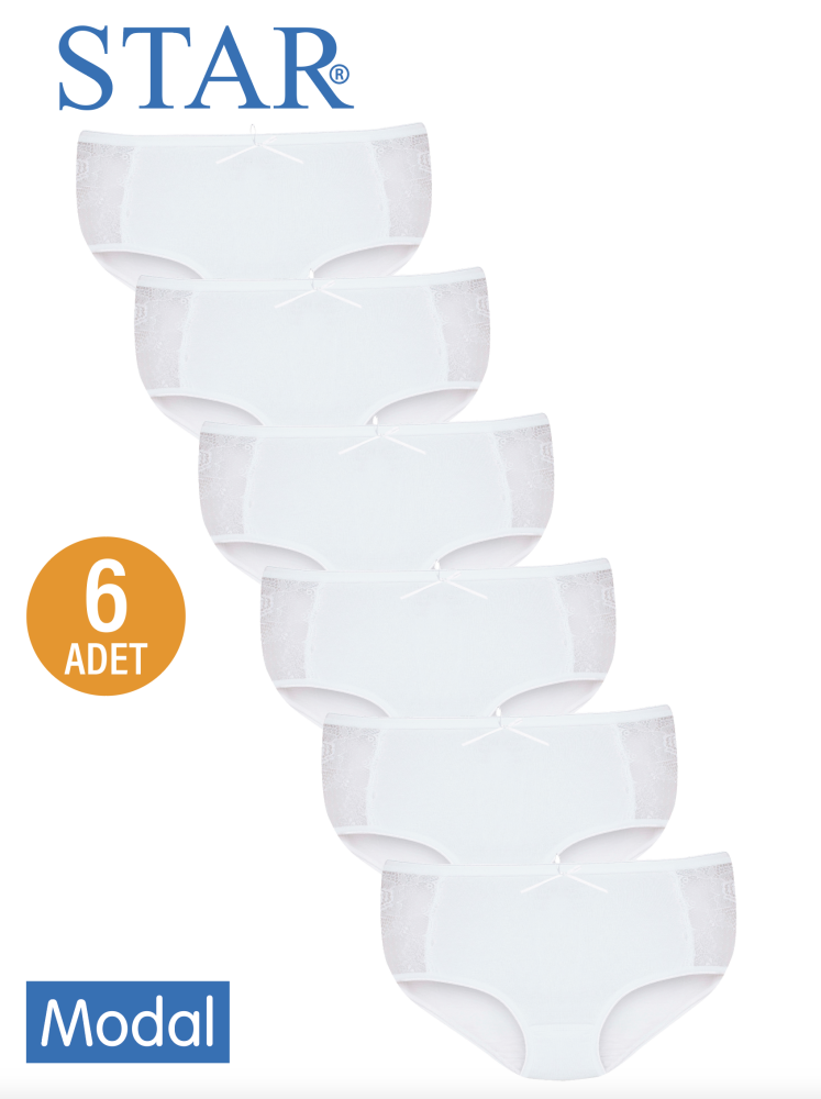 STAR KADIN 6 LI BEYAZ MODAL YANI DANTEL DETAYLI BATO KÜLOT