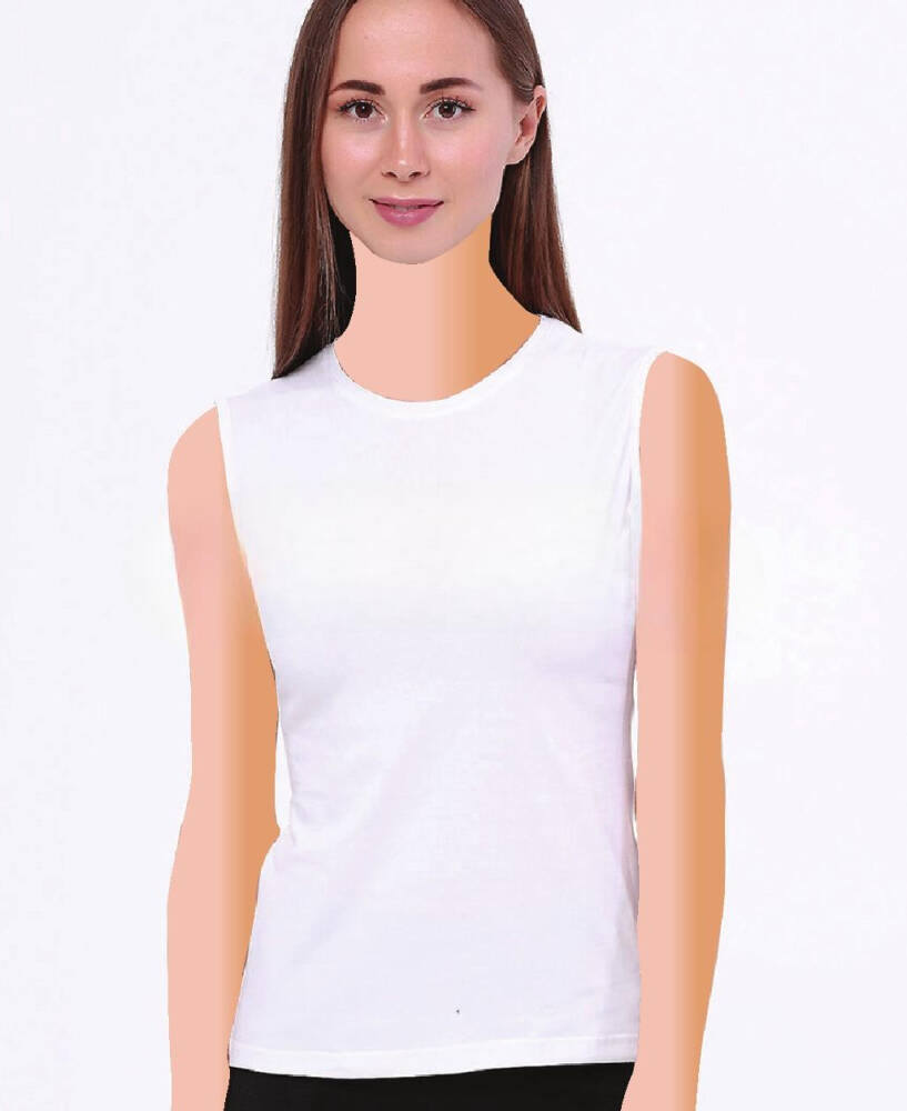 STAR KADIN BEYAZ MODAL SIFIR YAKA SIFIR KOL ATLET