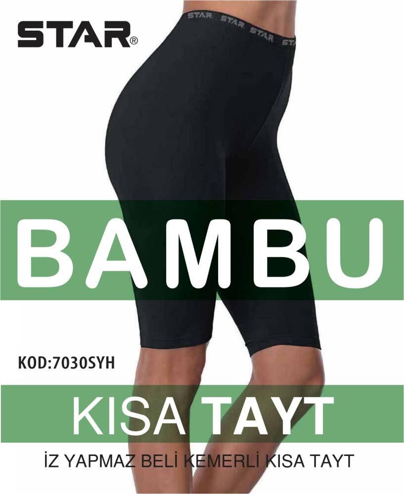 STAR KADIN SİYAH ORGANİK BAMBU DİZ ÜSTÜ KISA TAYT