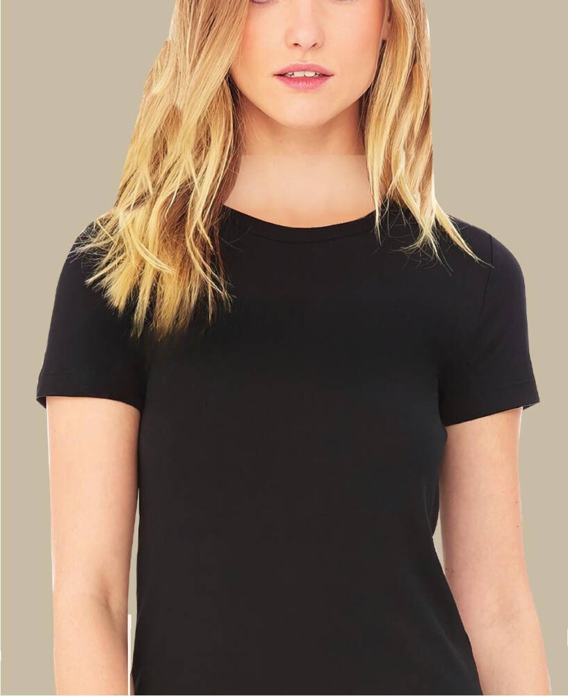 STAR KADIN SİYAH ORGANİK BAMBU SIFI YAKA KISAKOL T-SHİRT