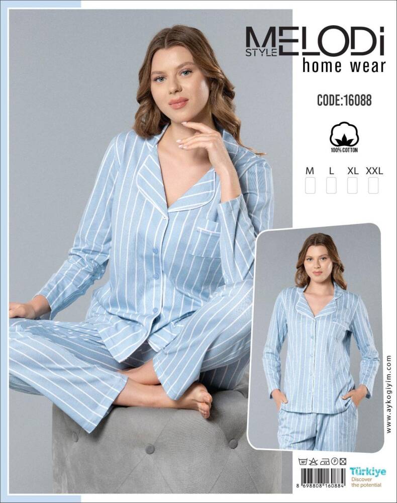 STAR MELODİ KADIN UZUNKOL BOYDAN DÜĞMELİ YAKALI PİJAMA TAKIM