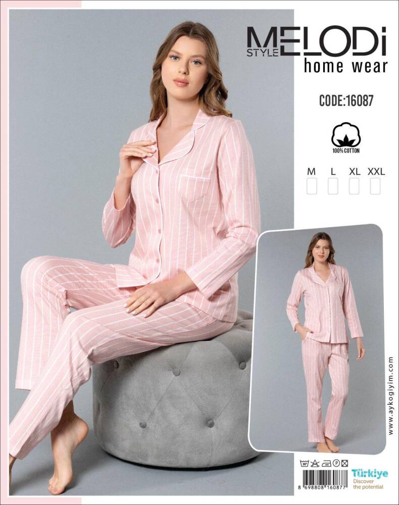 STAR MELODİ KADIN UZUNKOL BOYDAN DÜĞMELİ YAKALI PİJAMA TAKIM
