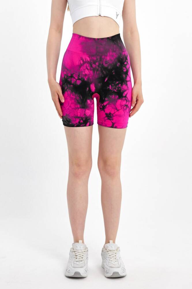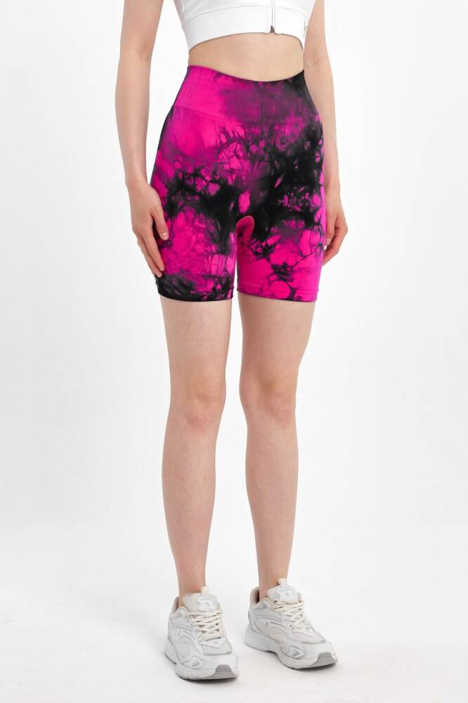 STAR ŞIMART KADIN ARKASI BÜZGÜLÜ SEAMLESS DESENLİ YÜKSEK BEL KISA TAYT
