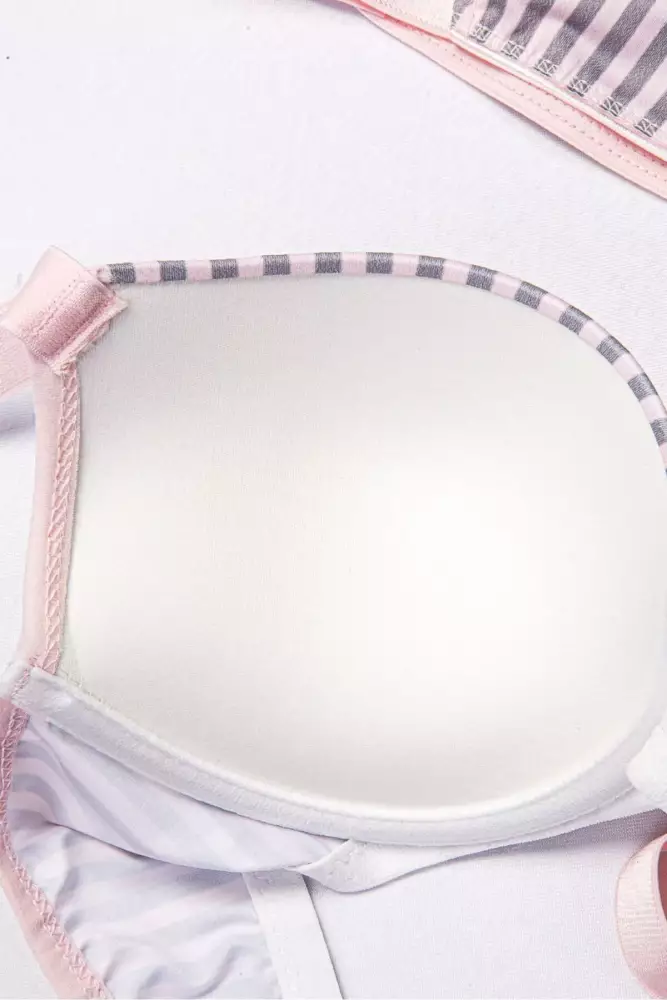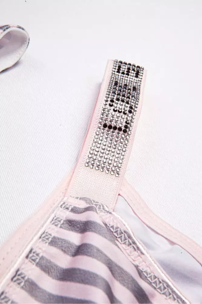Kadın Çizgili Mikro Kumaş Taşlı Askılı Dolgulu Sütyen Takım