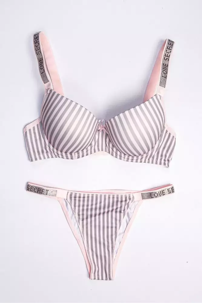 STAR Tılsım Lingerie Kadın Çizgili Mikro Kumaş Taşlı Askılı Dolgulu Sütyen Takım